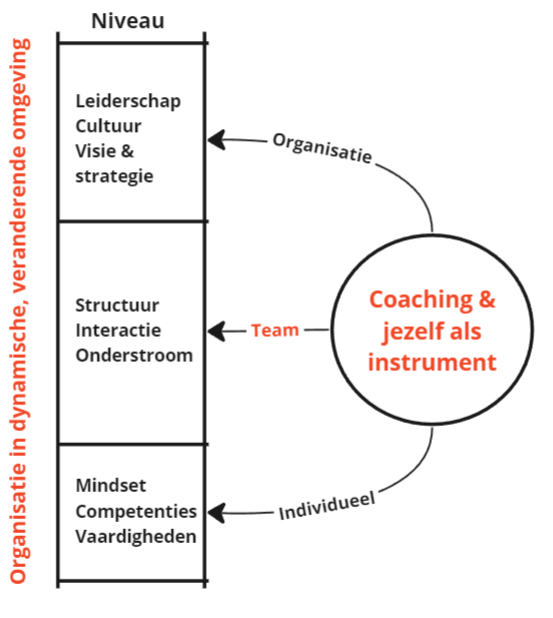 Wat heb je als team coach nodig om effectief te kunnen coachen bij teams die zich bevinden in een beweging naar meer wendbaarheid in de organisatie? Zijn er verschillen met wanneer dat niet zo is? In deze serie over team coaching & (enterprise) agility gaan we verdiepen in een aantal onderwerpen die je handvatten biedt bij het coachen van teams. Daarnaast kijken we naar wat dit betekent voor het werkveld agility. Ik zet hieronder allereerst de niveaus uiteen, we kijken naar de definitie van coaching, jezelf als instrument en vervolgens beschrijf ik wat je kunt verwachten in de serie.